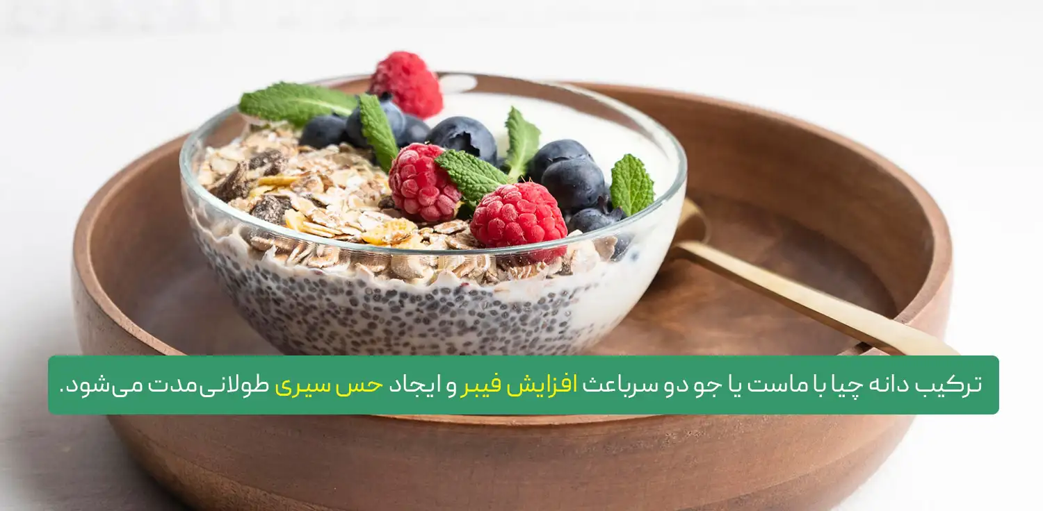 دانه چیا یک افزودنی عالی برای صبحانههای سالم است. میتوانید آن را با ماست، جو دوسر و غلات دیگر ترکیب کنید. این کار باعث افزایش فیبر و ایجاد حس سیری طولانیمدت میشود.
