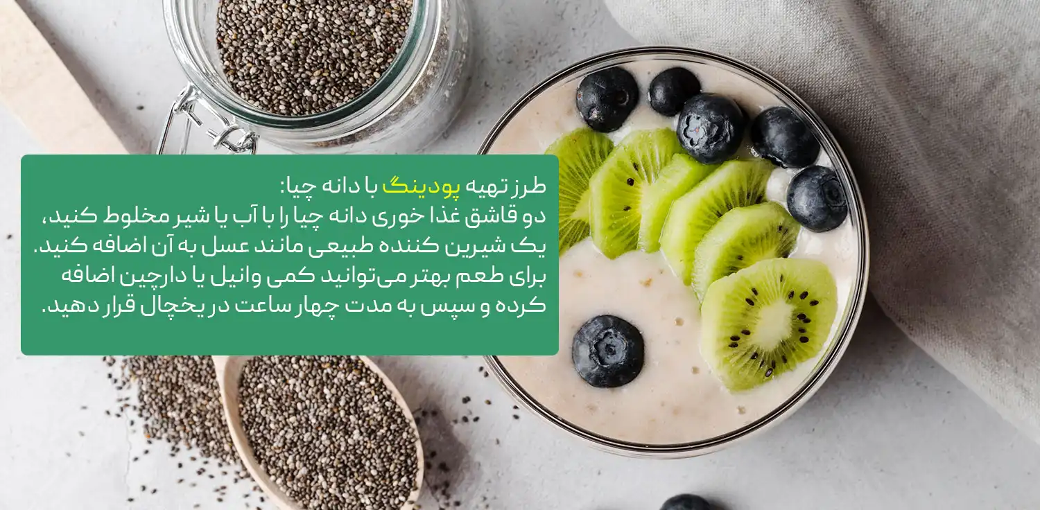 پودینگ چیا یکی از محبوبترین روشهای مصرف این دانه است. برای تهیه آن: