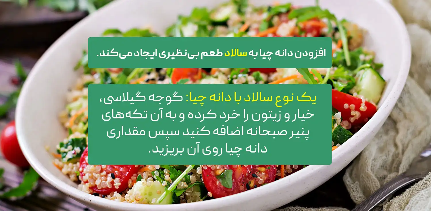 هنگام سرو سالاد، یک قاشق چیا روی آن بپاشید.