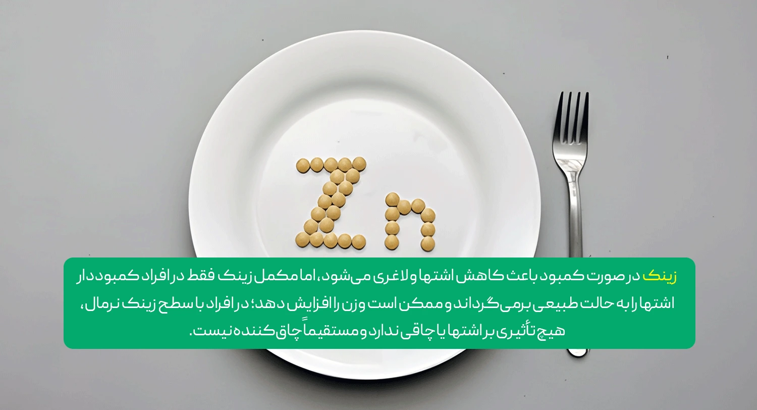 فقط غیرمستقیم با افزایش اشتها در افرادی که با کمبود زینک مواجه هستند.